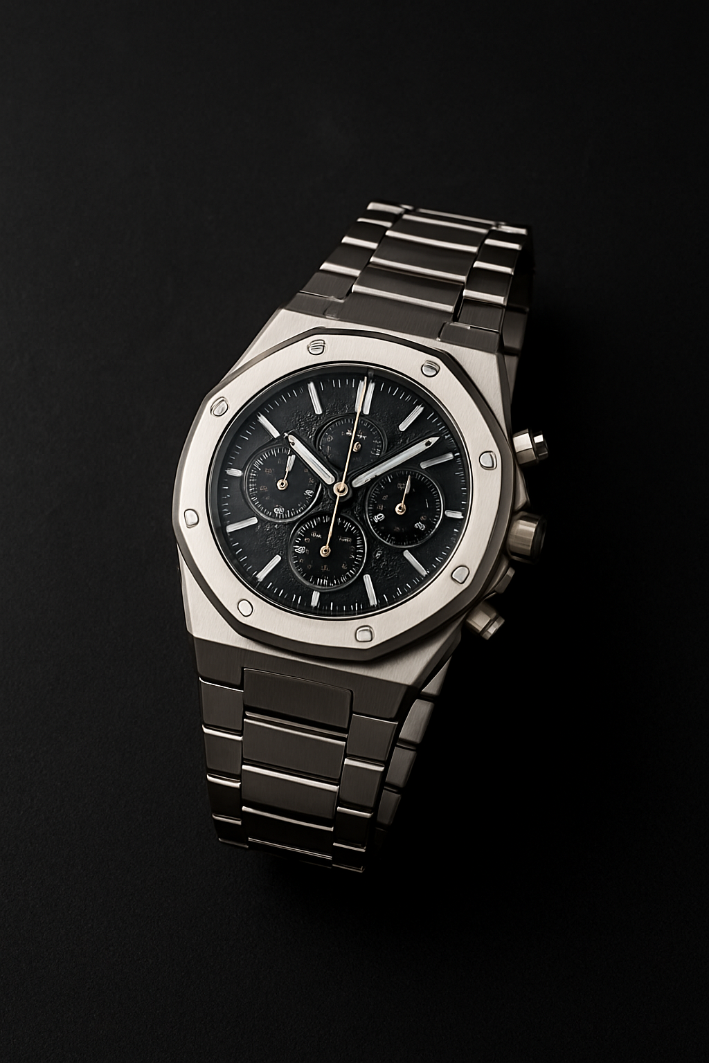 The Aurelius ChronoSteel is a statement of modern sophistication, designed for those who value both power and elegance. Crafted with a bold octagonal bezel, precision screw detailing, and a brushed stainless-steel bracelet, this timepiece radiates strength and luxury.